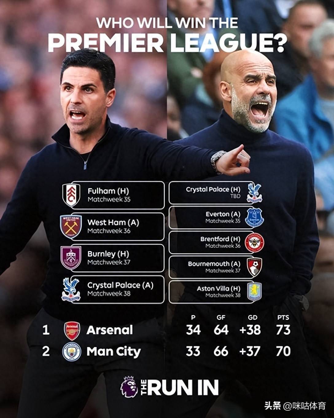 阿森纳与曼城英超收官前赛程: